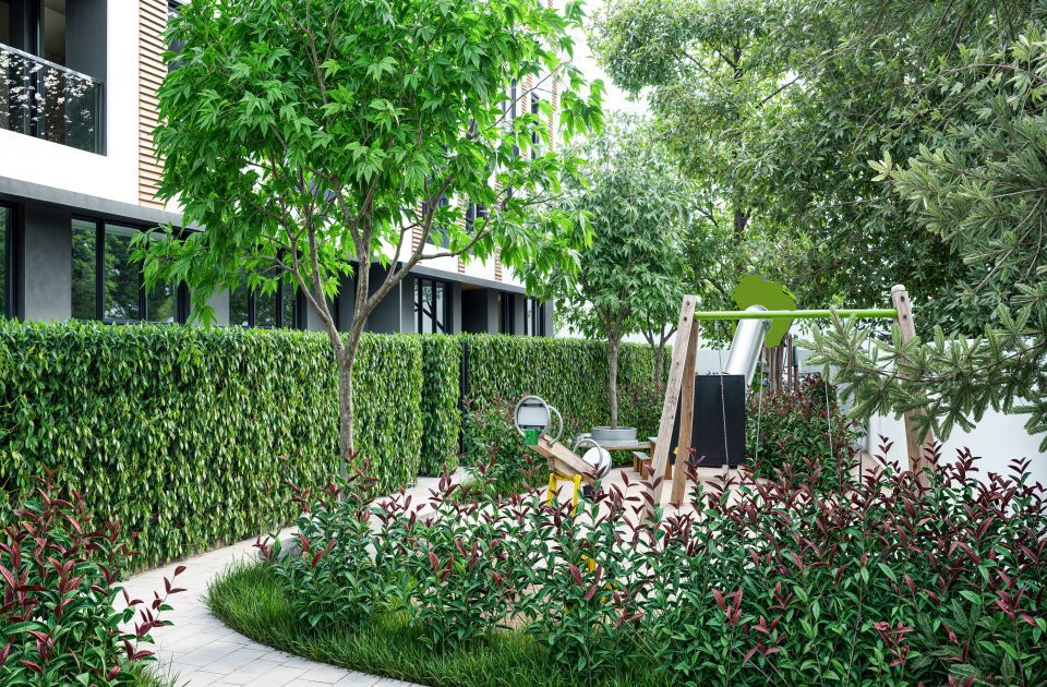 S obzirom na to da se parking nalazi u suterenu, a ne u prizemlju, ovaj deo kompleksa biće prilagođen pešacima. U centralnom dvorištu planirana je zelena oaza površine 850 kvadratnih metara, dok će se na zadnjem delu objekta nalaziti igralište sa raznovrsnim sadržajima za zabavu i relaksaciju za sve uzraste.
