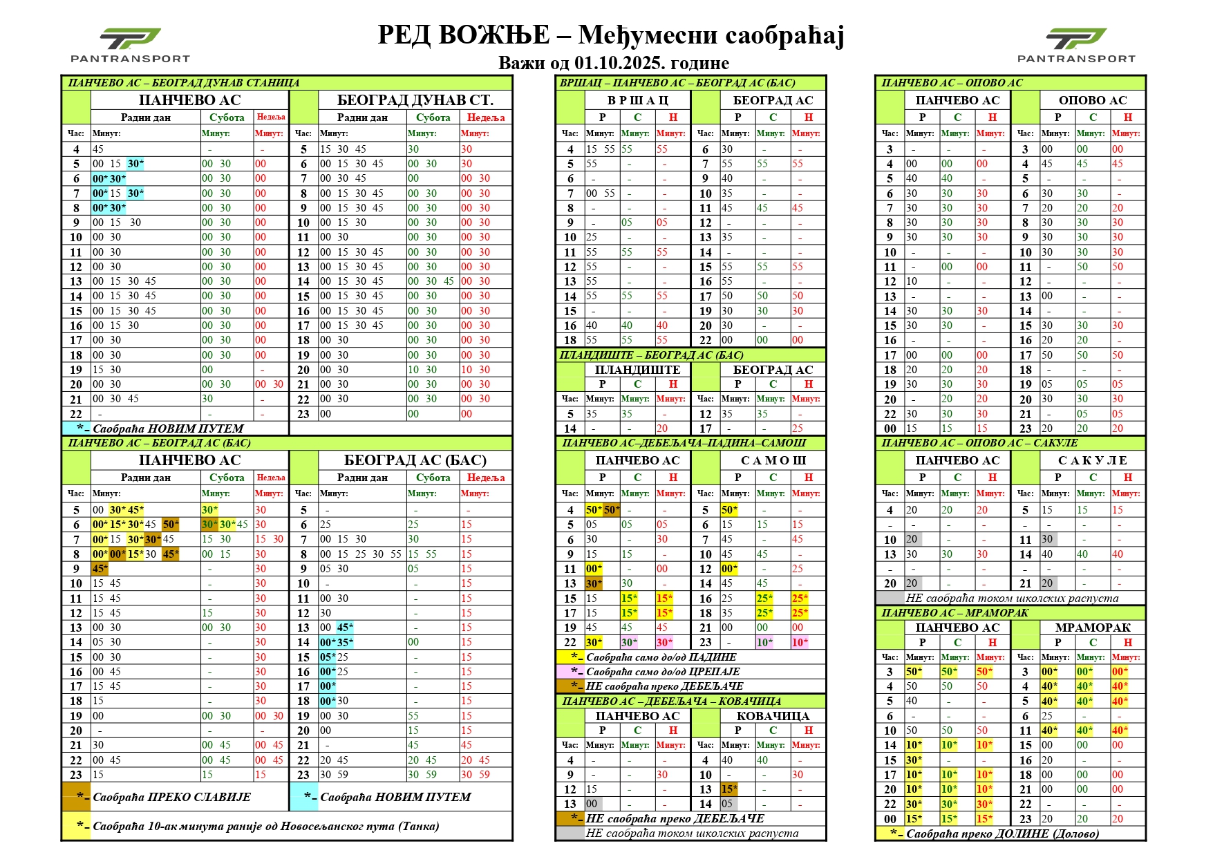 Pantransport saopštava da je od 1. oktobra stupio na snagu novi red vožnje na međumesnim linijama.